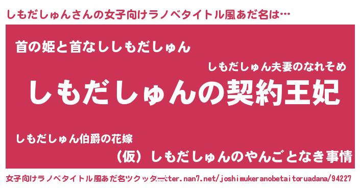 | 胡散臭い通販商品みたいなあだ名 | 『来世でも幸せになれる健康食品…その名も「しもだしゅん」』 |