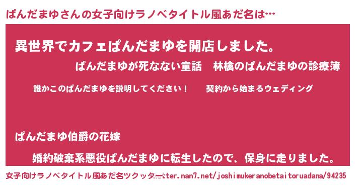 | 男性向けラノベタイトル風あだ名 | 『パンダマユアートオンライン』 |