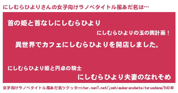 | ヘコむあだ名 | 『にしむらひより(笑)』『にしふぇ~』 |