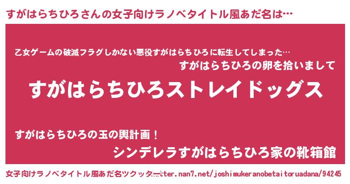 | 男性向けラノベタイトル風あだ名 | 『Re:すがはらちひろから始める異世界生活』 |
