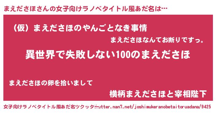 | 胡散臭い通販商品みたいなあだ名 | 『絶対に幸福をもたらす水素水…その名も「まえださほ」』 |