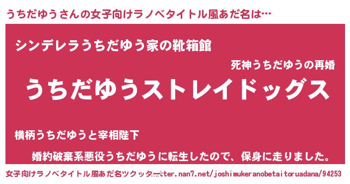 | ヒーロー風カッコイイあだ名 | 『究極戦士ウチダユウ』『魔戒騎士ウチ』 |