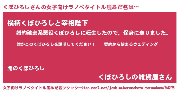 | 男性向けラノベタイトル風あだ名 | 『クボヒロシアートオンライン』 |