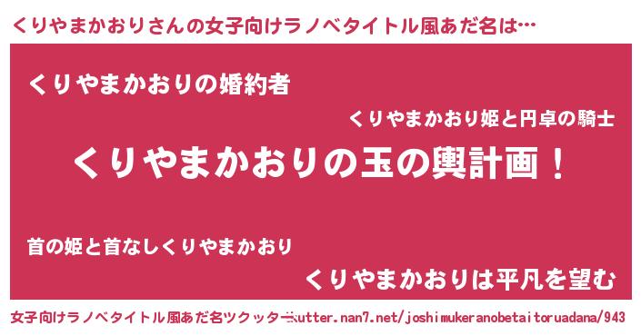 | 男性向けラノベタイトル風あだ名 | 『くりやまかおり~年齢イコール彼女いない歴の魔法使い~』 |