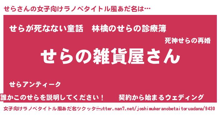 | 男性向けラノベタイトル風あだ名 | 『やはりせらの青春ラブコメはまちがっている 』 |