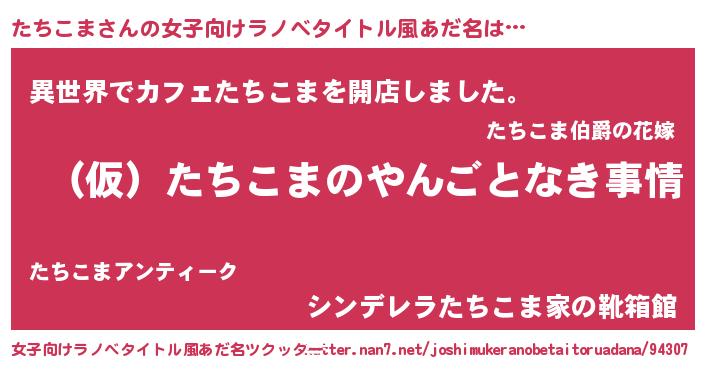 | 男性向けラノベタイトル風あだ名 | 『たちこまの憂鬱』 |