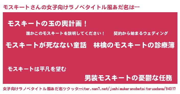 | 意味不明あだ名 | 『住所不定無職モスキート(2歳)』 |
