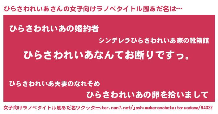 | 肩書あだ名 | 『ひらさわれいあ総統』 |