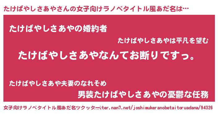 | 肩書あだ名 | 『たけばやしさあや閣下』 |