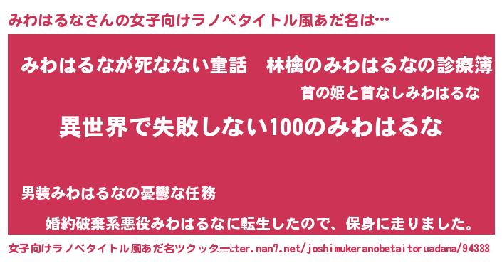 | 男性向けラノベタイトル風あだ名 | 『みわはるなという概念が存在しない退屈な世界 』 |
