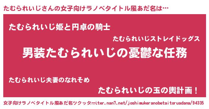 | 男性向けラノベタイトル風あだ名 | 『うちのたむられいじが世界を掌握している!』 |