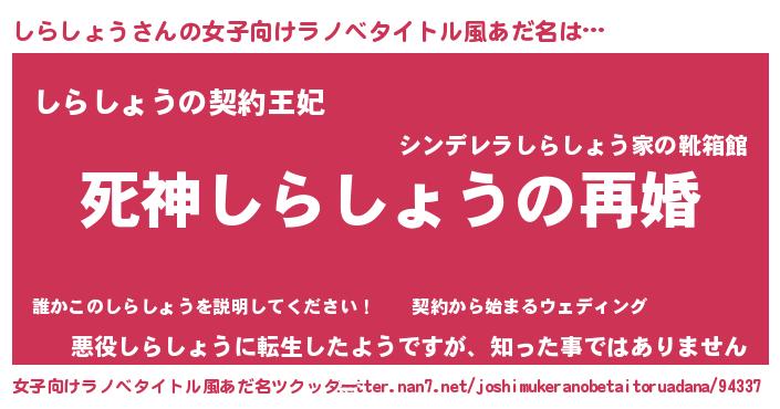 男性向けラノベタイトル風あだ名 | 『ノーゲーム・ノーシラショウ』 |