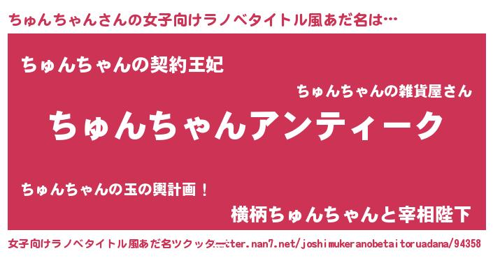 | 男性向けラノベタイトル風あだ名 | 『魔法科高校のちゅんちゃん』 |