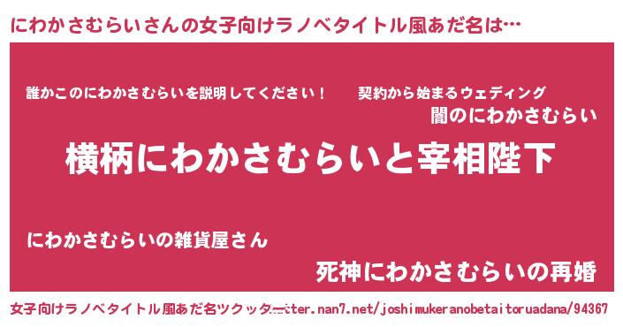 | 男性向けラノベタイトル風あだ名 | 『にわかさむらいに滅ぼされるだけの簡単なお仕事です』 |