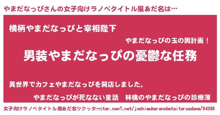 | 男性向けラノベタイトル風あだ名 | 『うちのやまだなっぴが世界を掌握している!』 |