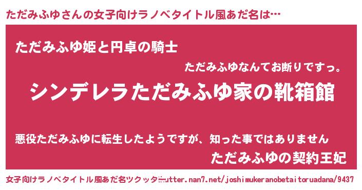 | ヘコむあだ名 | 『ただもー』『ただみふゆ(遠い目)』 |