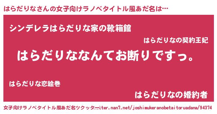| 男性向けラノベタイトル風あだ名 | 『魔法科高校のはらだりな』 |