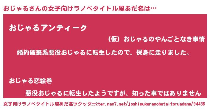 | 男性向けラノベタイトル風あだ名 | 『転生したらおじゃるだった件』 |