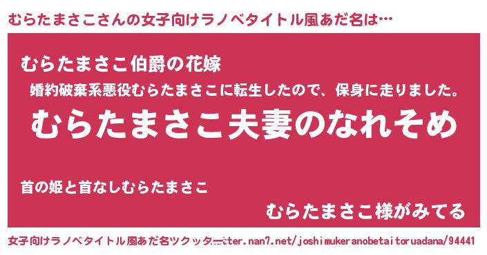 | 男性向けラノベタイトル風あだ名 | 『おまえをオタクにしてやるから、俺をむらたまさこにしてくれ! 』 |