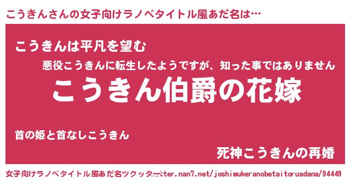 | 意味不明あだ名 | 『こうきんフォーエバー』 |