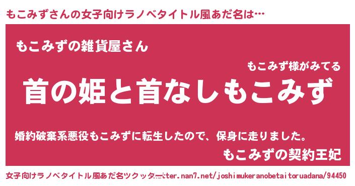 | 男性向けラノベタイトル風あだ名 | 『はたらくもこみずさま!』 |