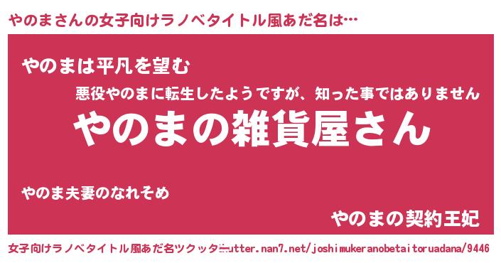 | 男性向けラノベタイトル風あだ名 | 『やはりやのまの青春ラブコメはまちがっている 』 |