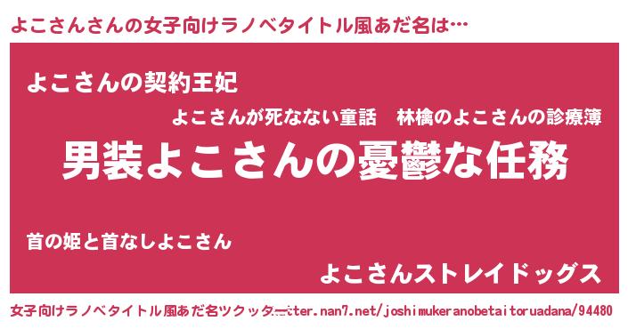 | 男性向けラノベタイトル風あだ名 | 『うちのよこさんが世界を掌握している!』 |