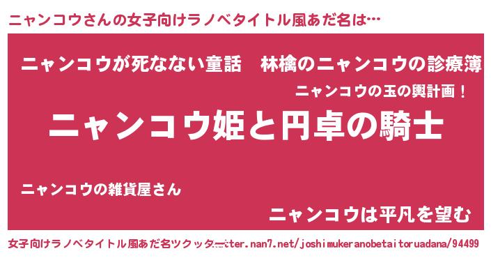 | 男性向けラノベタイトル風あだ名 | 『ニャンコウアートオンライン』 |