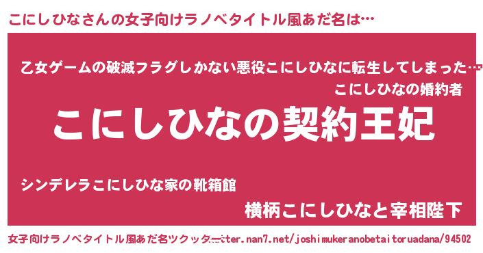 | 胡散臭い通販商品みたいなあだ名 | 『来世でも幸せになれる健康食品…その名も「こにしひな」』 |