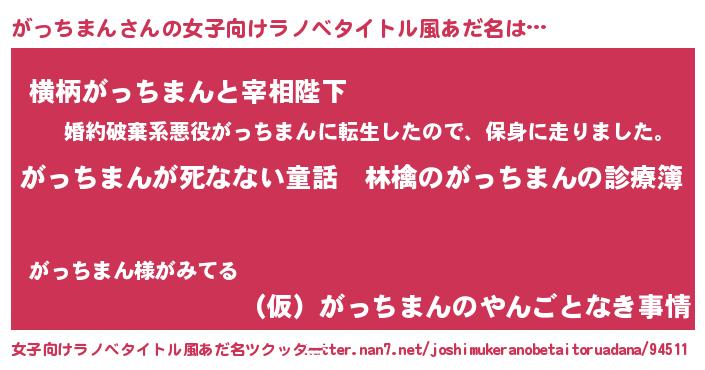 | 男性向けラノベタイトル風あだ名 | 『魔弾の王とがっちまん』 |