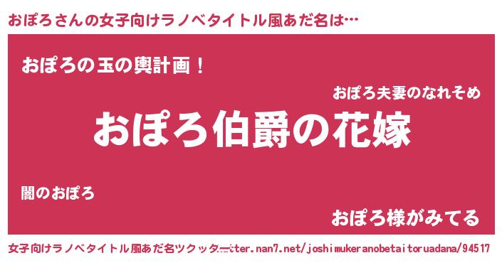 | 男性向けラノベタイトル風あだ名 | 『やはりおぽろの青春ラブコメはまちがっている 』 |