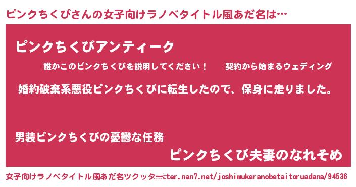 | 男性向けラノベタイトル風あだ名 | 『ピンクチクビスレイヤー』 |