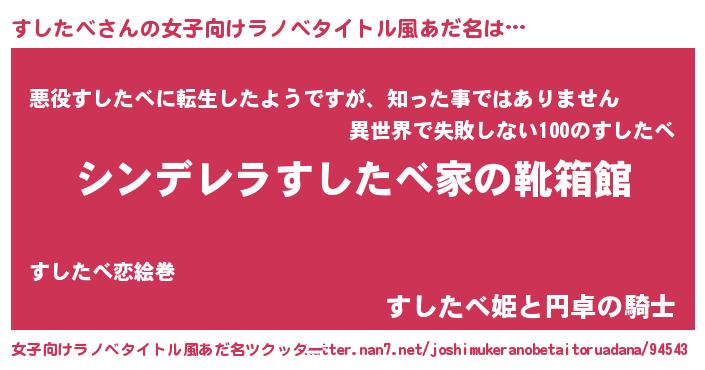 | 意味不明あだ名 | 『住所不定無職すしたべ(89歳)』 |