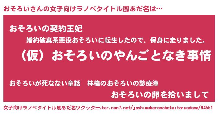 ヘコむあだ名 | 『おそふぇ~』『おそろい(震え声)』 |