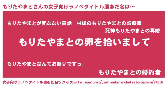 | 男性向けラノベタイトル風あだ名 | 『もりたやまとの嫁は女の子じゃないと思った?』 |