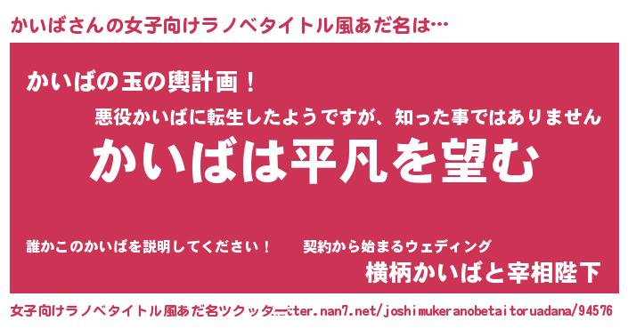 | 胡散臭い通販商品みたいなあだ名 | 『信頼と実績のネックレス…その名も「かいば」』 |