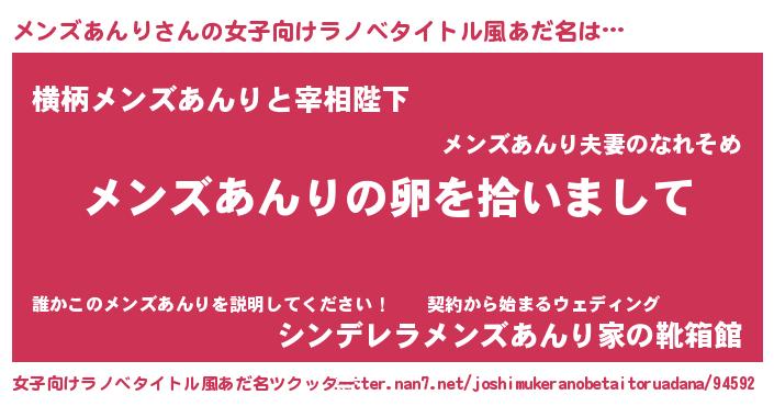 | 男性向けラノベタイトル風あだ名 | 『ダンジョンにメンズあんりを求めるのは間違っているだろうか』 |