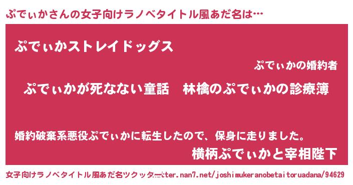 | 男性向けラノベタイトル風あだ名 | 『魔弾の王とぷでぃか』 |