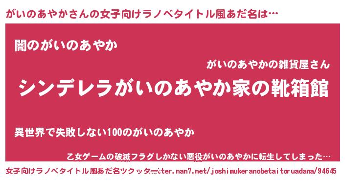 | 意味不明あだ名 | 『自称がいのあやか』 |