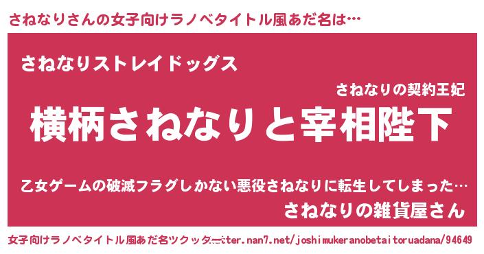 | 男性向けラノベタイトル風あだ名 | 『さねなりに滅ぼされるだけの簡単なお仕事です』 |