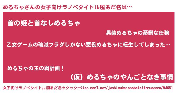 | 意味不明あだ名 | 『住所不定無職めるちゃ(50歳)』 |