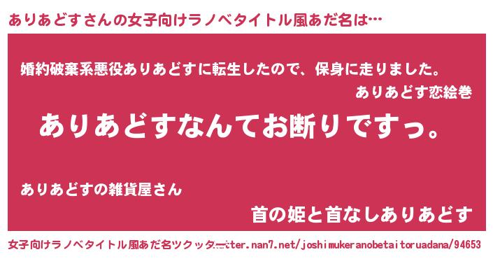 | 意味不明あだ名 | 『自称ありあどす』『永久保存ありあどす』 |