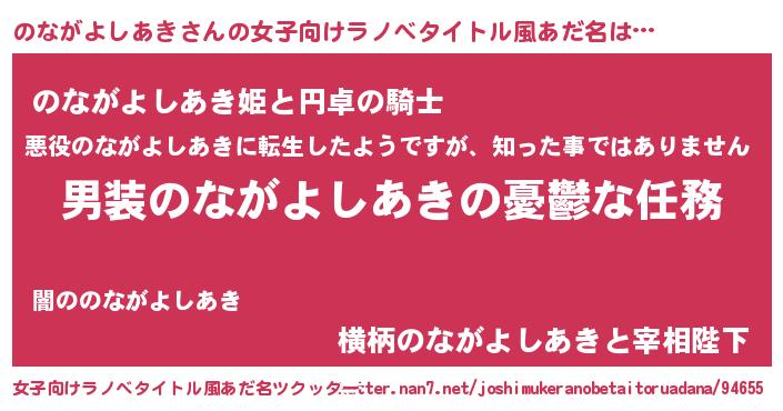 | 男性向けラノベタイトル風あだ名 | 『うちののながよしあきが世界を掌握している!』 |
