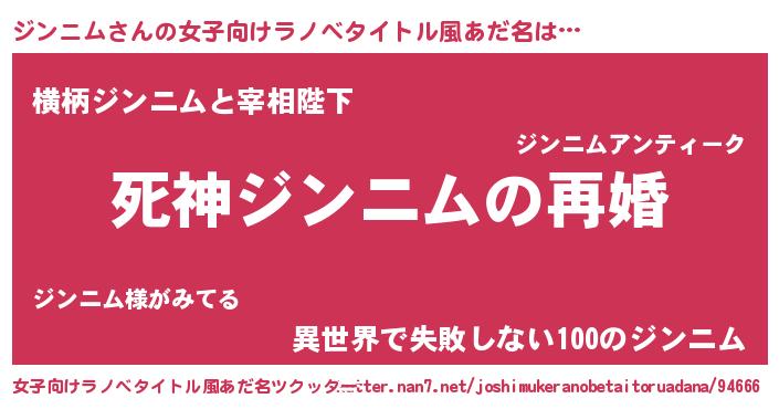 | 男性向けラノベタイトル風あだ名 | 『ノーゲーム・ノージンニム』 |