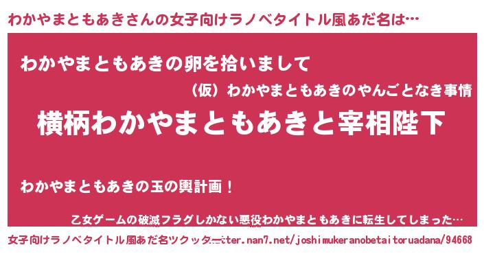 | 胡散臭い通販商品みたいなあだ名 | 『伝統あるネックレス…その名も「わかやまともあき」』 |