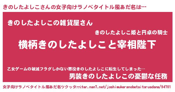 | 男性向けラノベタイトル風あだ名 | 『きのしたよしこに滅ぼされるだけの簡単なお仕事です』 |