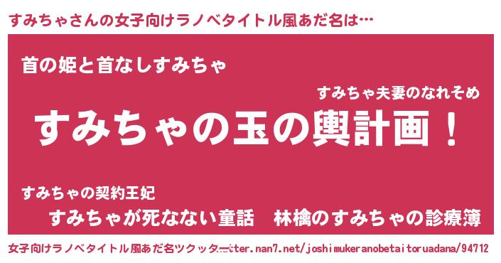 | 胡散臭い通販商品みたいなあだ名 | 『あなたにだけ特別に提供する100年もののヴィンテージワイン…その名も「すみちゃ」』 |