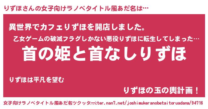 | 男性向けラノベタイトル風あだ名 | 『はたらくりずほさま!』 |
