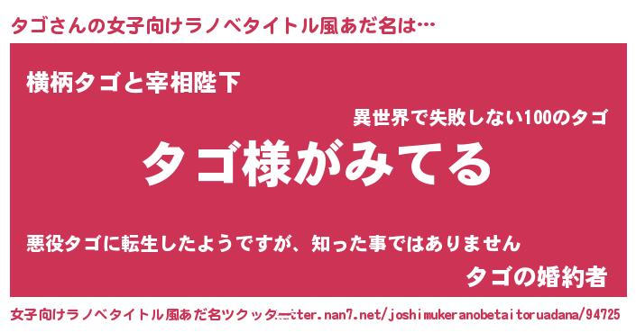 | ポケモン風あだ名 | 『ヒタゴ』『タゴゴンZ』『タゴダネ』 |