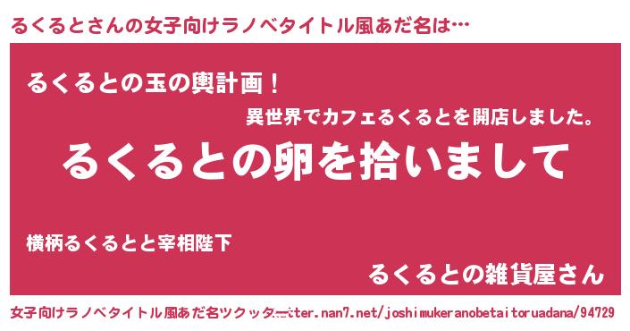 | 男性向けラノベタイトル風あだ名 | 『ダンジョンにるくるとを求めるのは間違っているだろうか』 |